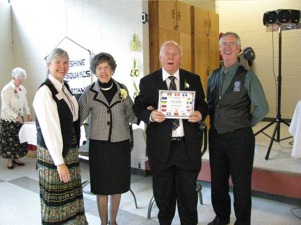 Keith has always been among the first leaders to volunteer his time whether it be a ski weekend, our annual curling day, promotion dances, the Grey Cup dance, or any other charitable dance that needed a caller. In 1991 he supported the club when Sunshine Squares organized a dance to raise funds for the Heart & Stroke Foundation, and for the next 15 years he organized area callers to donate their time in support of this cause. His inspired calling and Rita’s continued support have carried them through 56 years of life immersed in the Square Dance World and enshrined by thousands of dancers Keith has taught throughout his career.