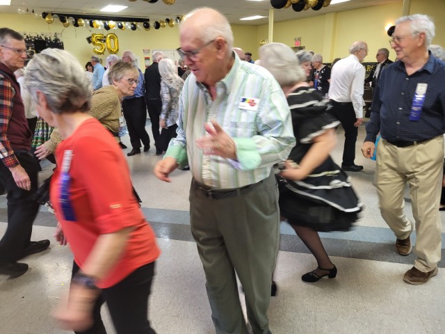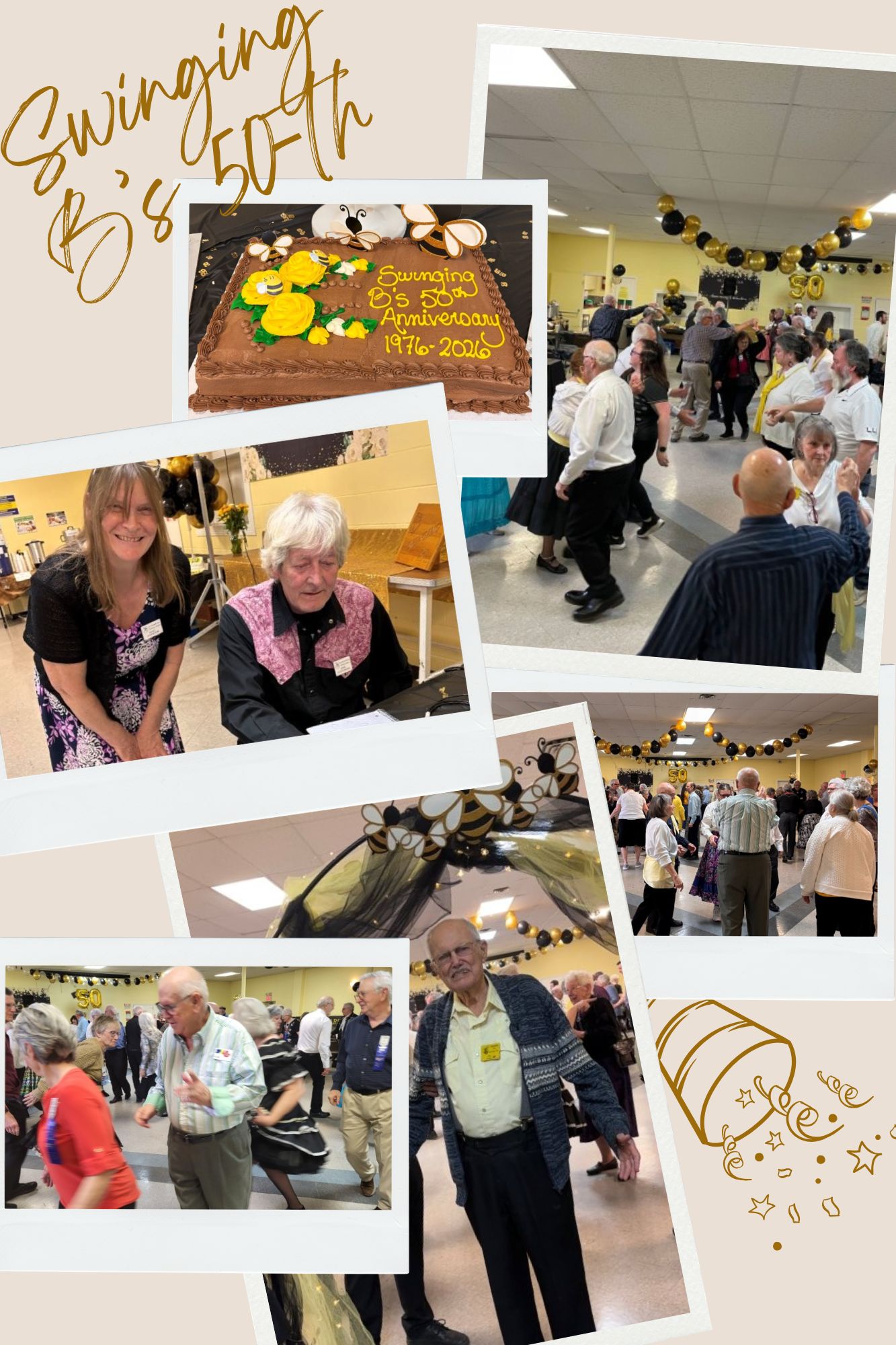 A great turnout for the 50th Anniversary dance that was held by the Swinging B's on March 6, 2026. They had 109 dancers dosado'ing the afternoon away and enjoying a fulfilling hot & cold buffet supper. The club honored their eldest member, Bill Shield, 92 years young, and their longest serving members Carol & Bob Milne, with certificates.